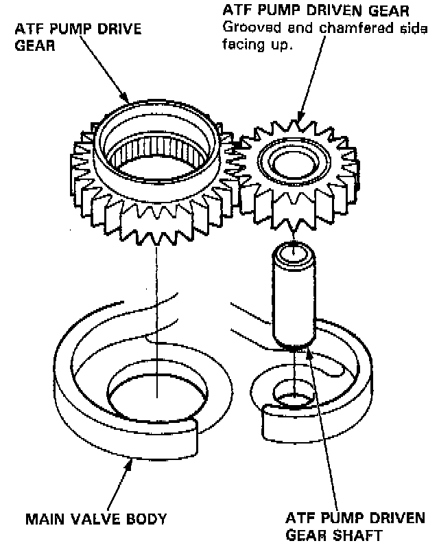 - Install the ATF pump driven gear with its grooved and chamfered side facing up as shown.