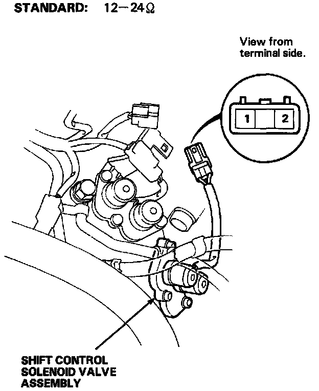 3. Replace the shift control solenoid valve assembly if the resistance is out of specification.