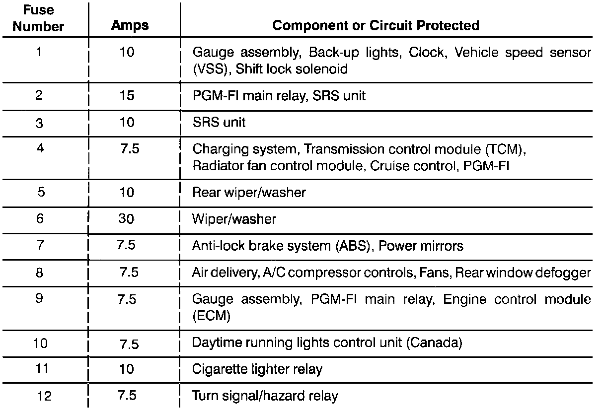 Fuse/Relay Information - under-dash Fuse/Relay Box (part 1 Of 2):