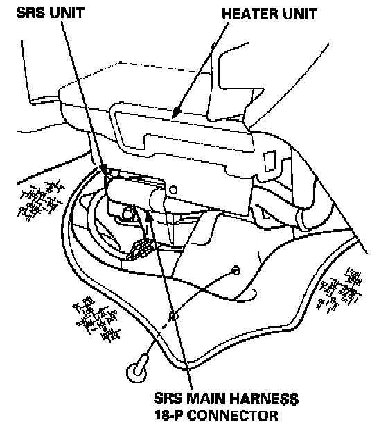 4. Disconnect the SRS main harness 18-P connector from the SRS unit.