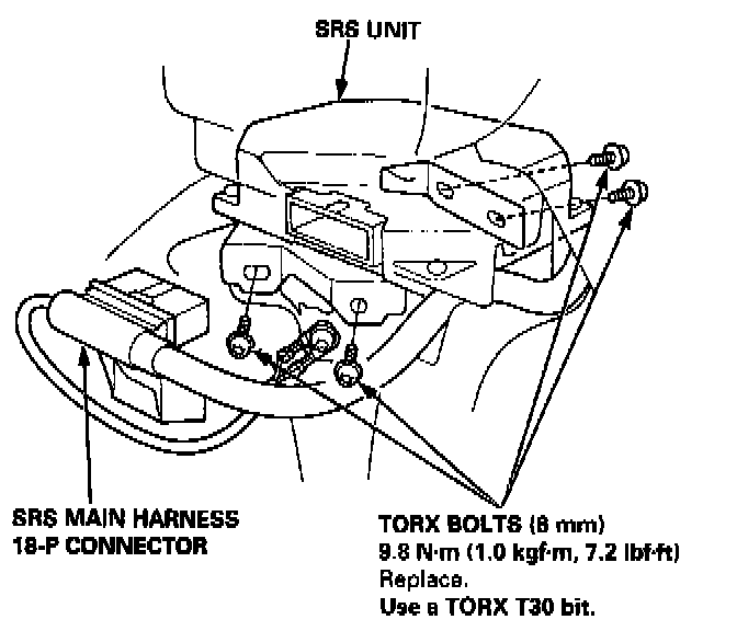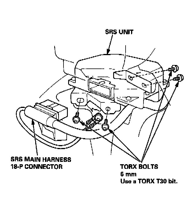 5. Remove the four Torx bolts from the SRS unit, then pull out the SRS unit from the passenger's side.