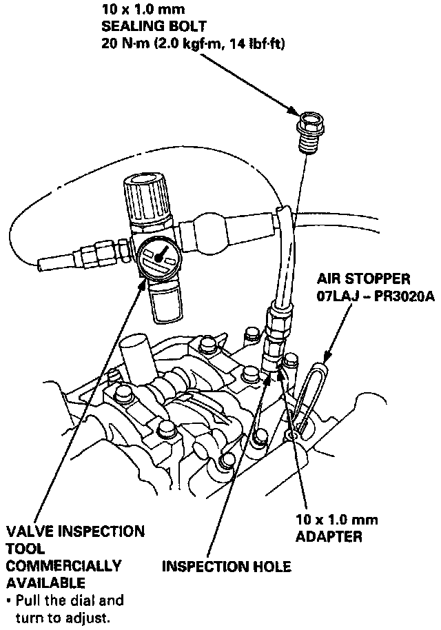 3. Remove the sealing bolt from the inspection hole, and connect the Valve Inspection Tool.
