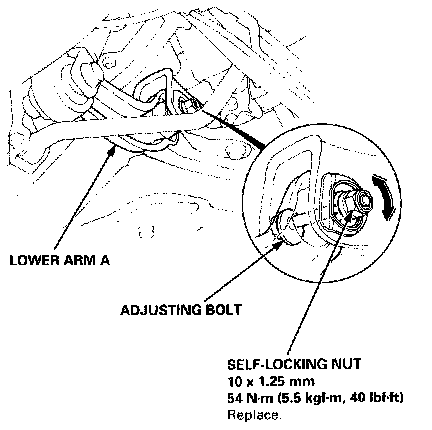 2. Hold the adjusting bolt on the rear lower arm and loosen the self-locking nut.