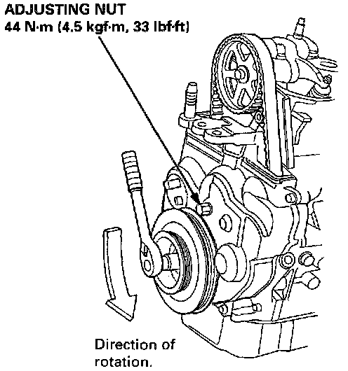 - Always rotate the crankshaft counterclockwise when viewed from the pulley side. Rotating it clockwise may result in improper adjustment of the belt tension.