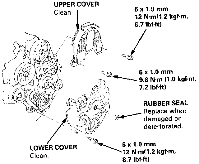 - Lock the timing belt adjuster arm in place by installing one of the 6 x 1.0 mm bolts.