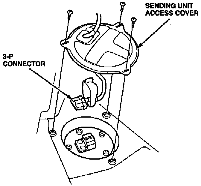3. Make sure the ignition is off. Then disconnect the 3-P connector from the sending unit.