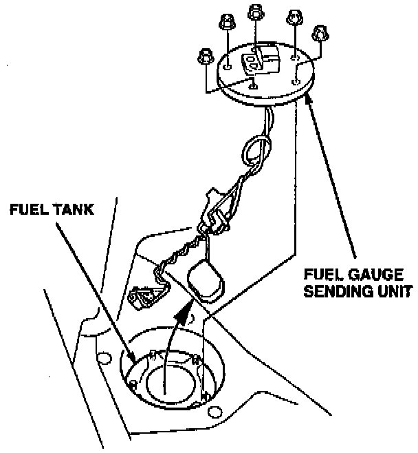 4. Remove the five mounting nuts. Remove the sending unit from the fuel tank.