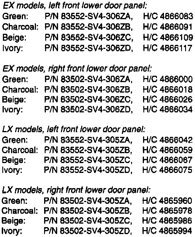 When ordering, be sure to choose the correct vehicle model, door position, and lower door panel color.