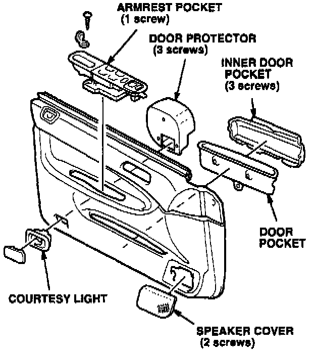 2. Lay the door panel on a protective cloth, then remove these parts: