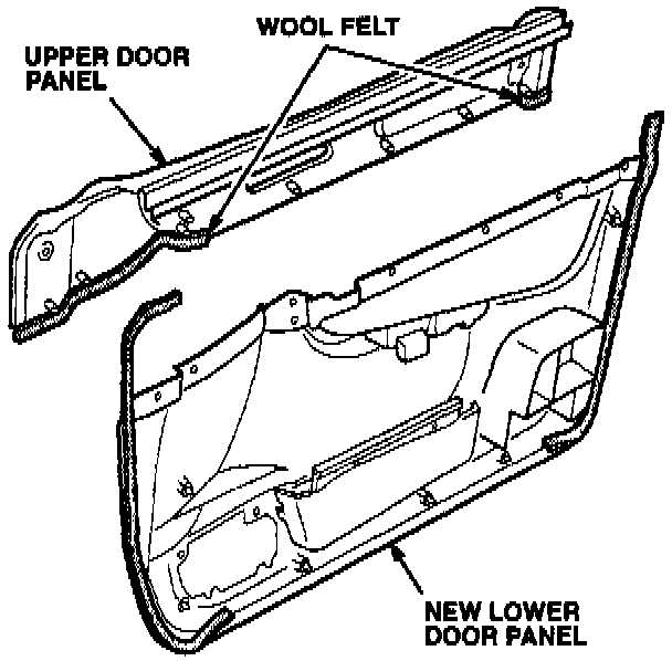 Replace the lower door panel with the new panel listed under PARTS INFORMATION.