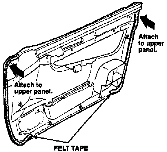 6. Look for a strip of wool felt along the bottom edge of the upper door panel. If the felt is not there, install a 7-mm-wide strip along the edge.