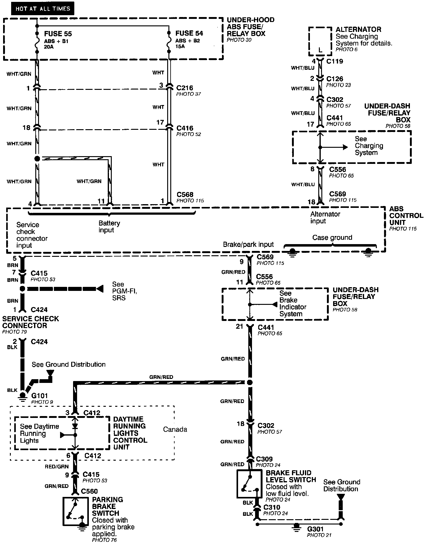 Anti-lock Brake System (ABS)- Brake Switch, Indicator, And Wheel Speed Sensor Inputs: