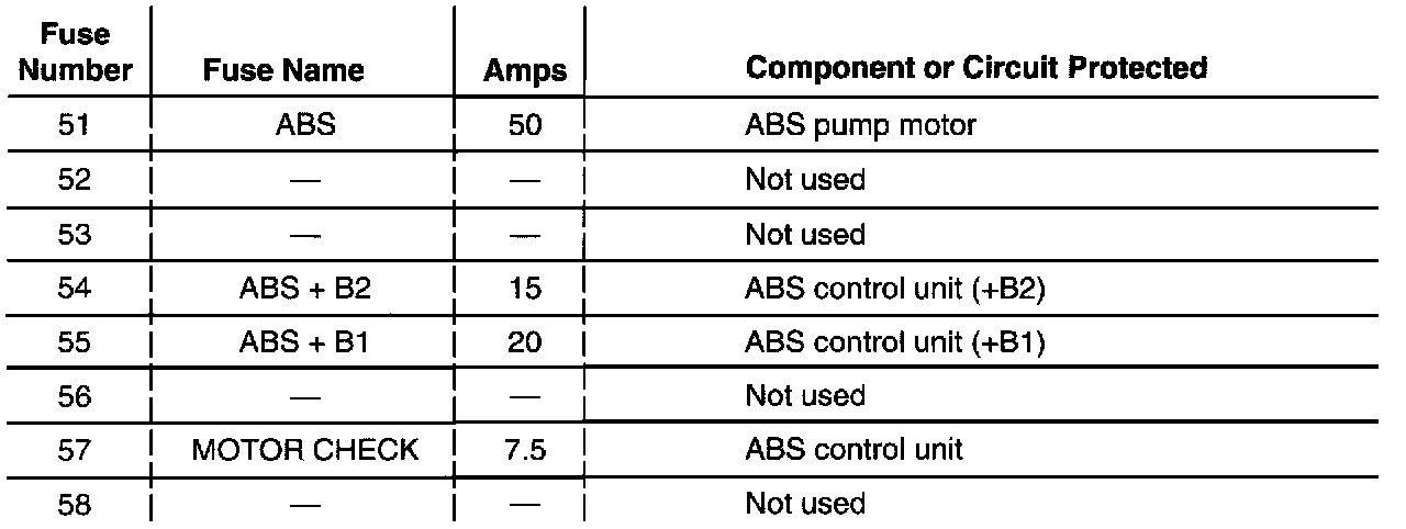 Fuse/Relay Information-Under-hood ABS Fuse/Relay Box: