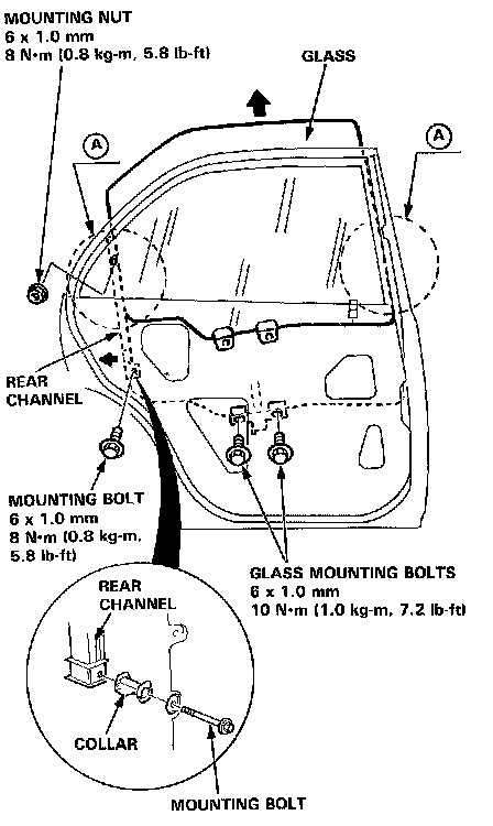 - Take care not to damage locations (A) of the glass run channel.