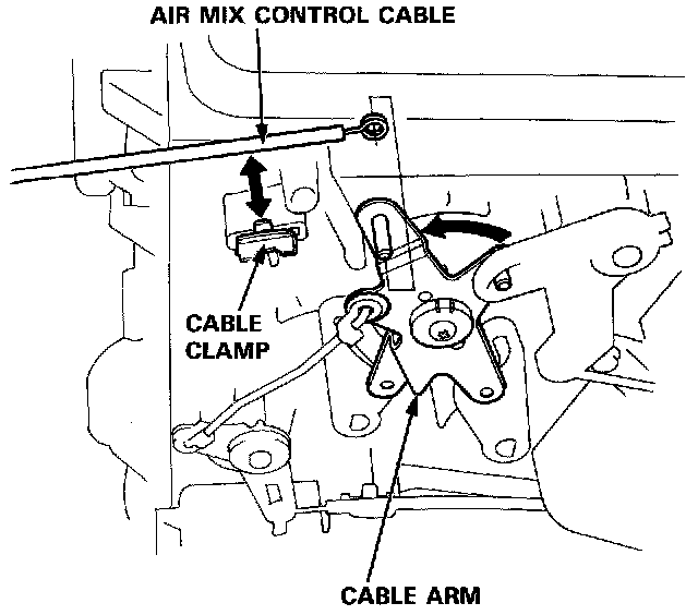 9. Turn the cable arm to the stop and connect the end of the air mix control cable to the cable arm.
