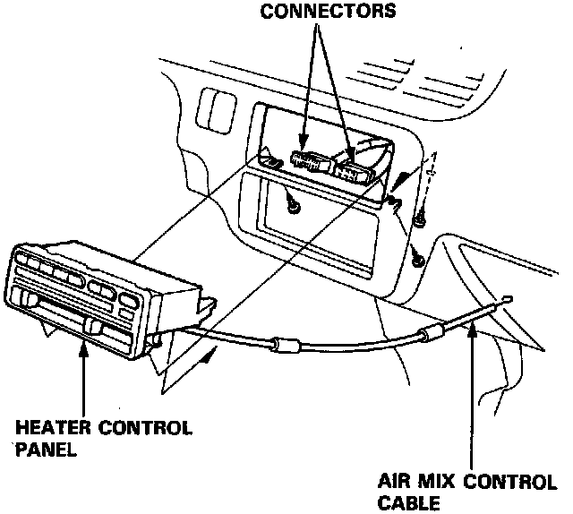 NOTE: Do not drop the screws inside the dashboard. Take care not to bend the air mix control cable.
