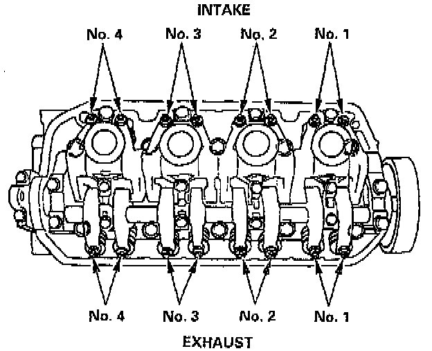 8. Rotate the crankshaft 180° counterclockwise to bring No. 2 piston to TDC. The UP" mark should be on the intake side. Adjust valves on No. 2 cylinder.