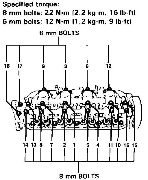 8mm bolts: 22 Nm (2.2 kg-m, 16 lb.ft.)