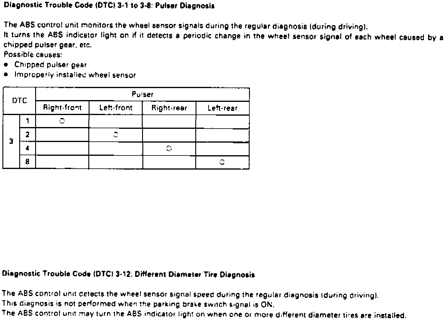 Fig. 57 Code 3-1 Through 3-8 & 3-12: Pulser Diagnosis & Different Diameter Tire Diagnosis: