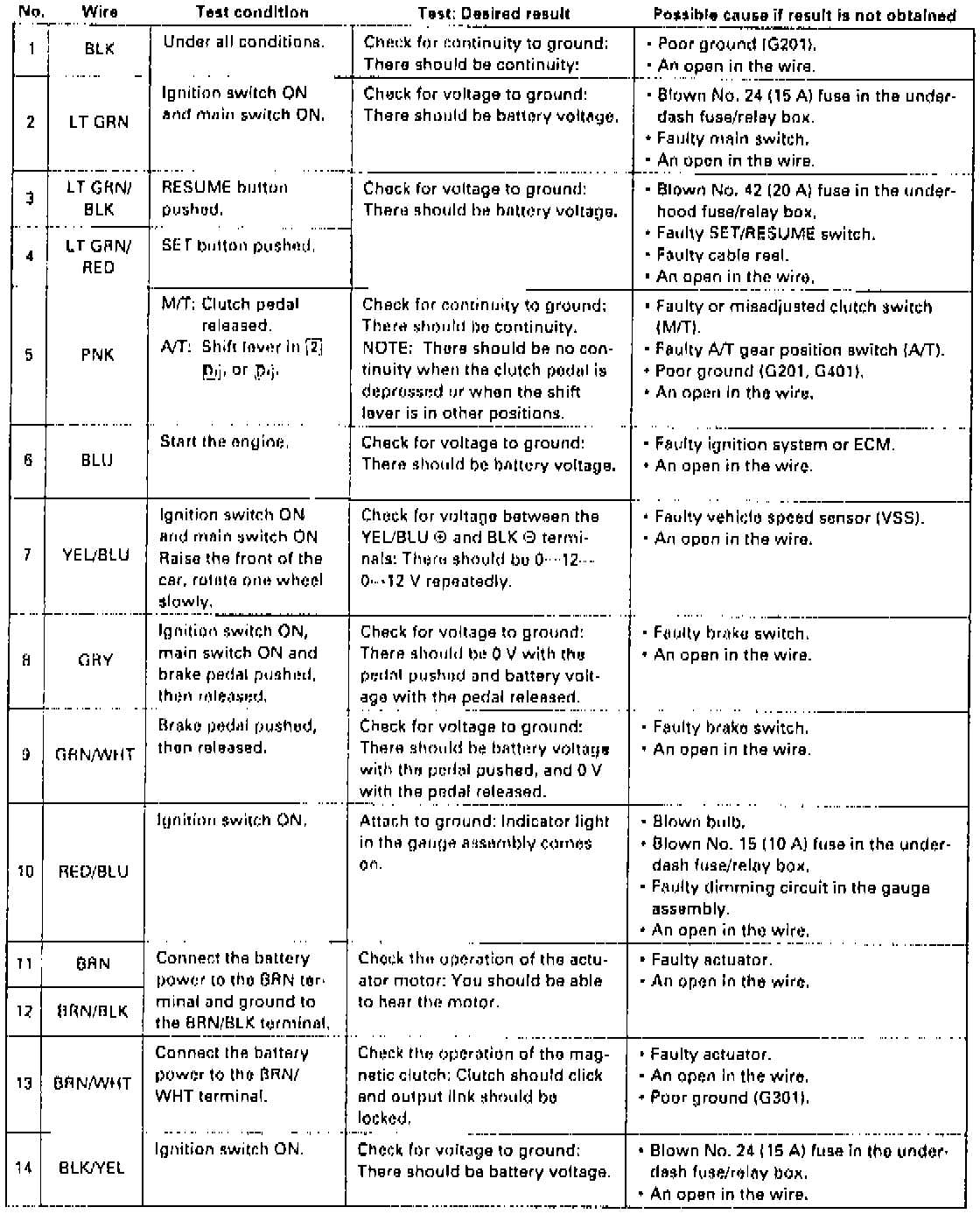 Fig. 24 Speed Control Unit Input Test Chart:
