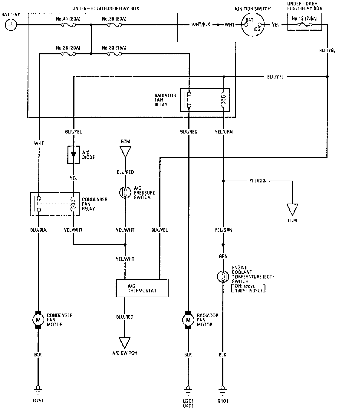 Fig. 5 Cooling Fan Wiring Circuit With A/C: