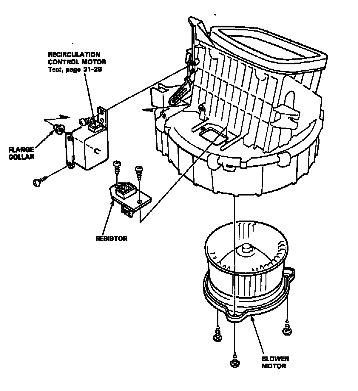 6. Disconnect the connectors from the blower motor. resistor then remove the blower.