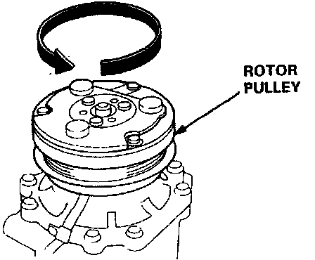 Clutch Inspection- Check the rotor pulley bearing play and drag by rotating the rotor pulley by hand. Replace the clutch set with a new one if it is noisy or has excessive play/drag.