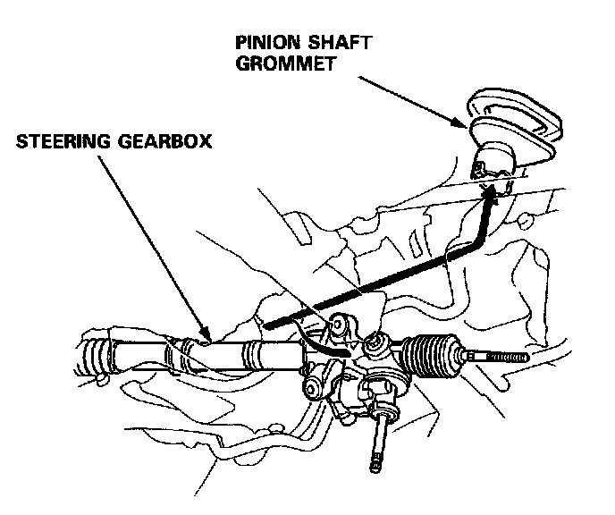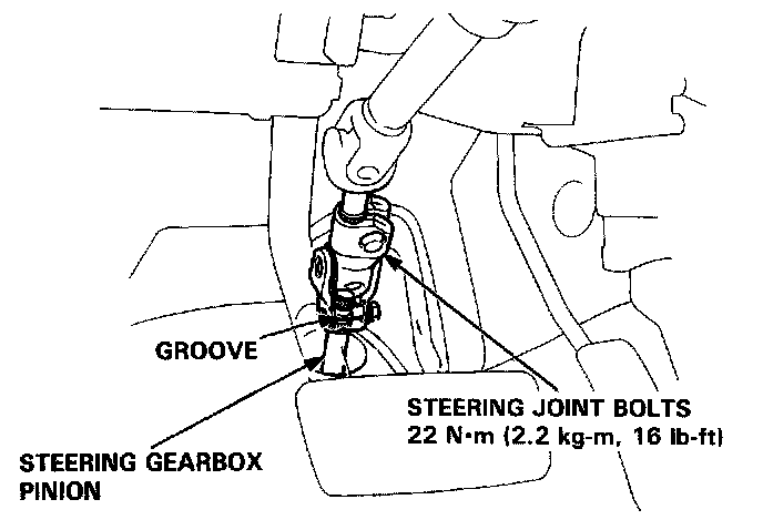 - Be sure that the lower steering joint bolt is securely in the groove in the steering gearbox pinion.