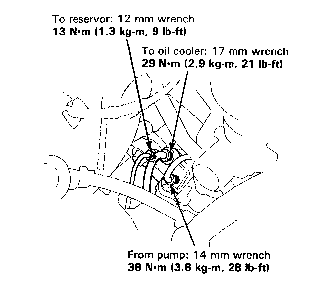 15. Fill the system with recommended power steering fluid and bleed air from the system