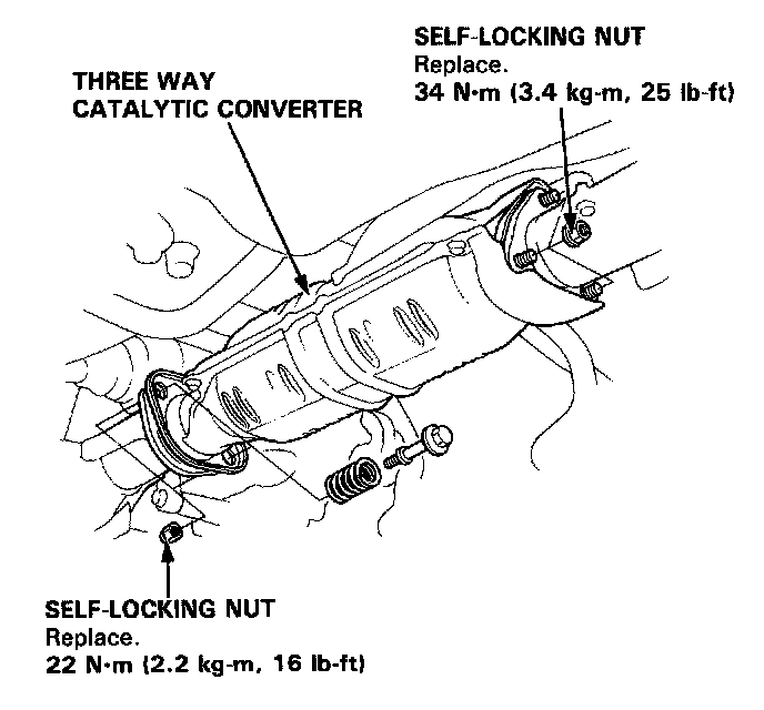 9. Install the three way catalytic converter with the new gaskets and new self-locking nuts.