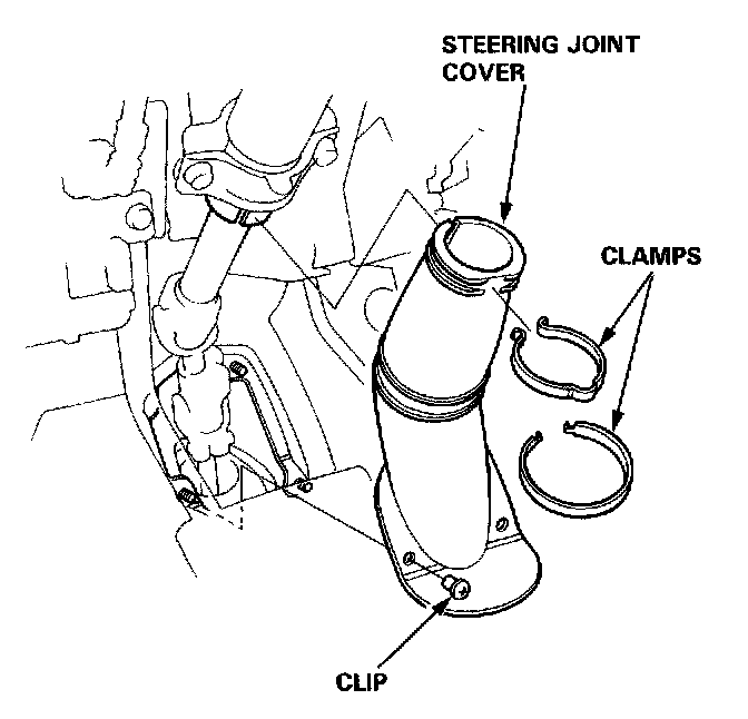 14. Install the steering joint cover with the clamps and clip.