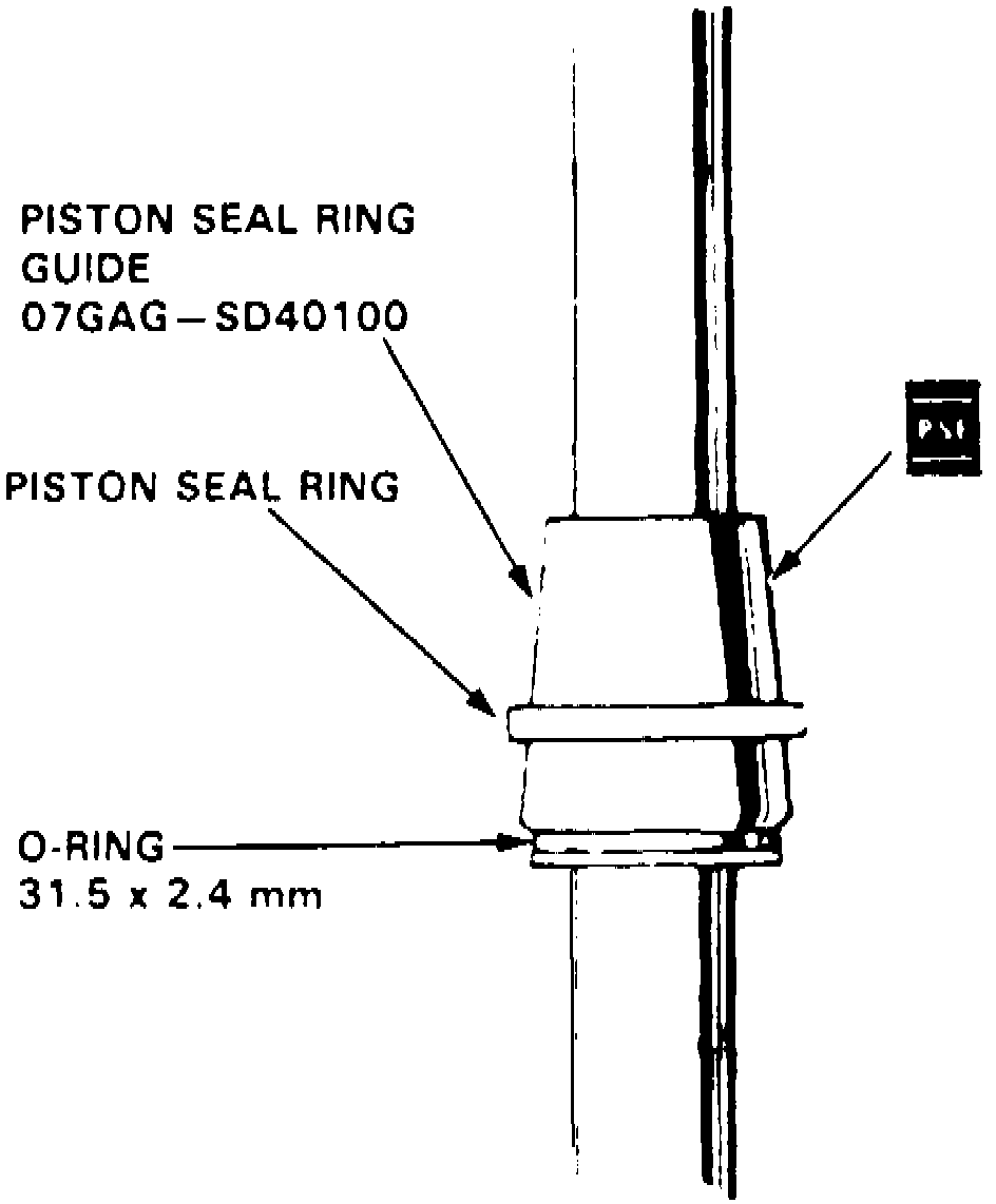 3. Position new piston seal ring onto piston seal ring guide tool No. 07GAG-SD40100, or equivalent. Slide seal ring down to large end of tool and pull it off into piston groove on top of O-ring, Fig. 4.