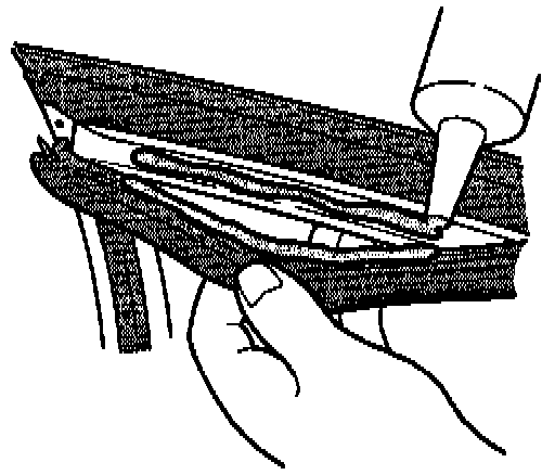 2. Examine the weatherstrip. If it is torn, remove and discard it. If it is OK, lift about 4 mm on each side of the affected area.