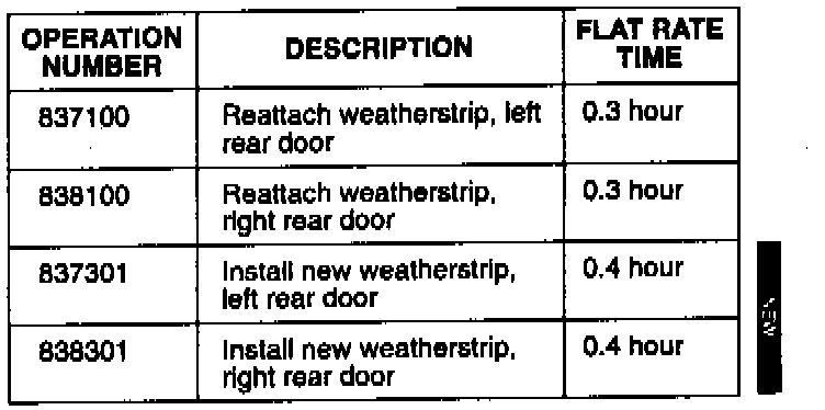 Rear Door Weatherstrip Detached or Deformed