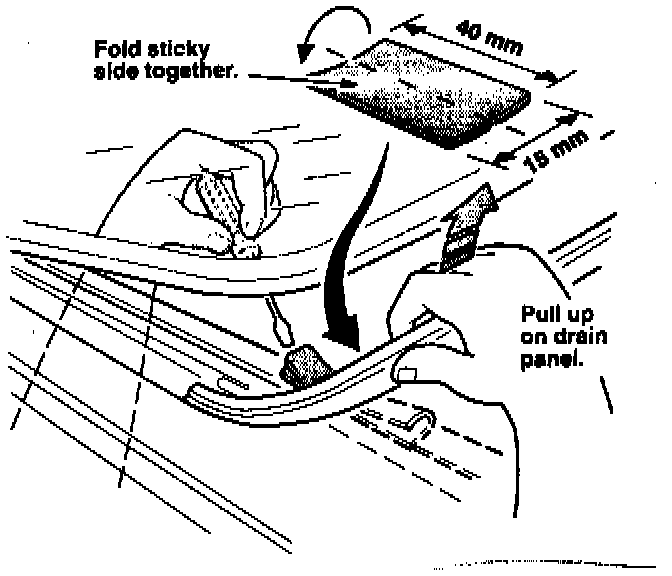 4. Pull up on the moon roof drain panel and insert a piece of EPT between it and the sunshade rail.