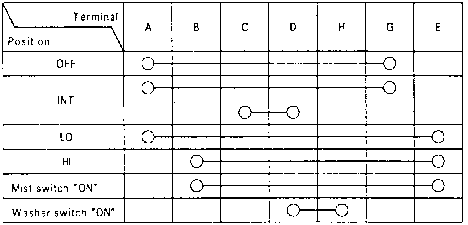 Fig. 9 Wiper/Washer Switch Continuity Chart: