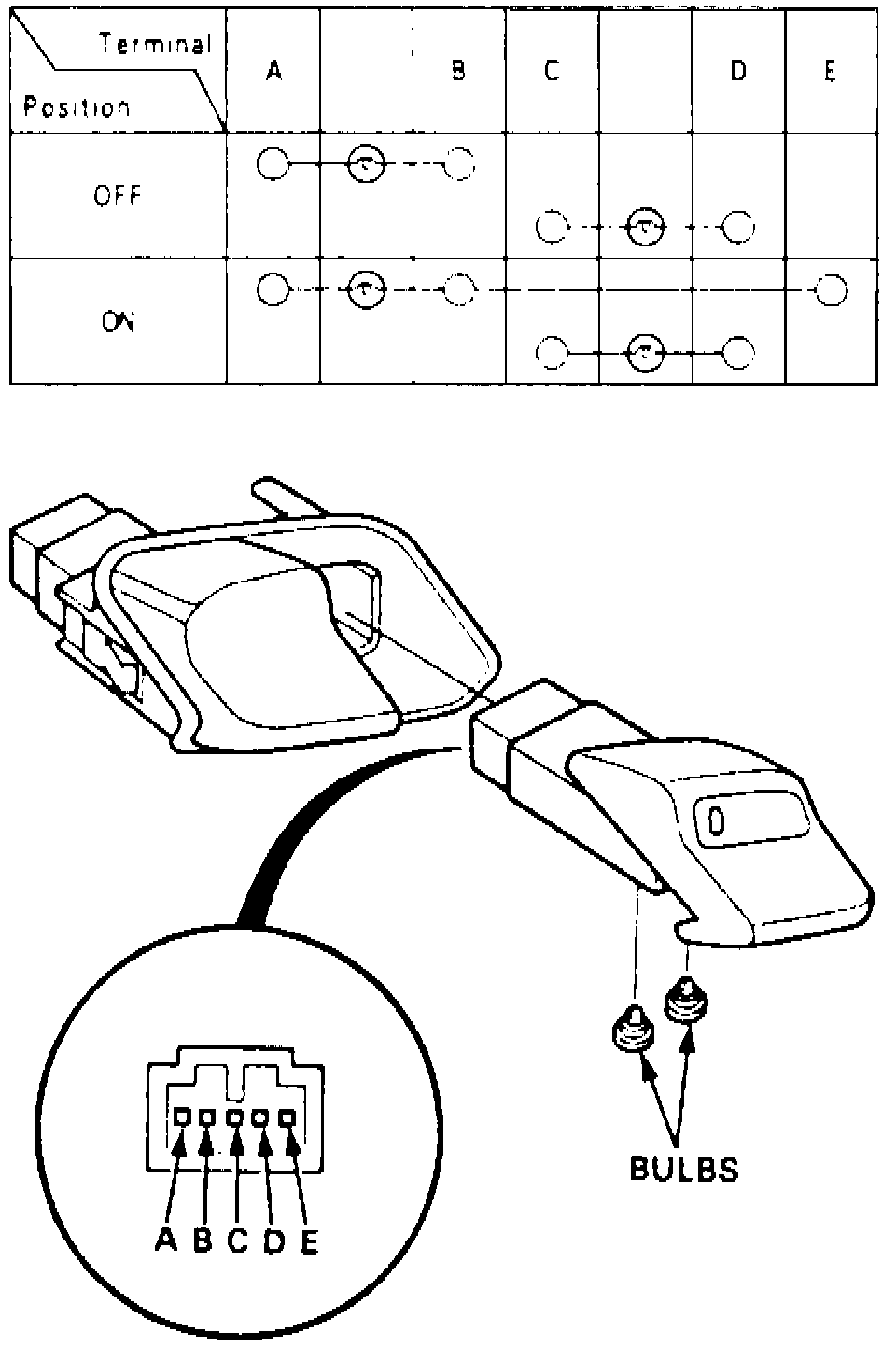 3. Check for continuity between terminals in each switch position according to tables, Fig. 30.