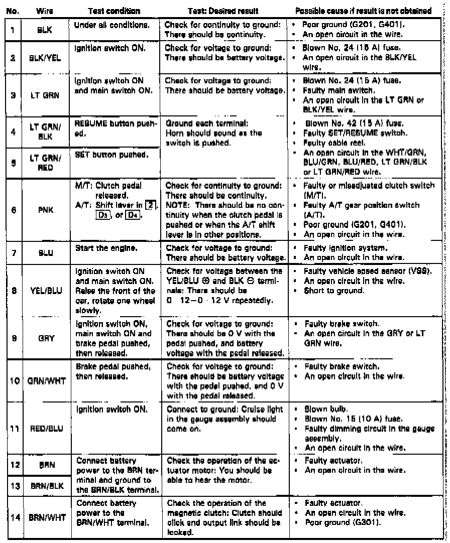 Fig. 27 Speed Control Unit Input Test Chart: