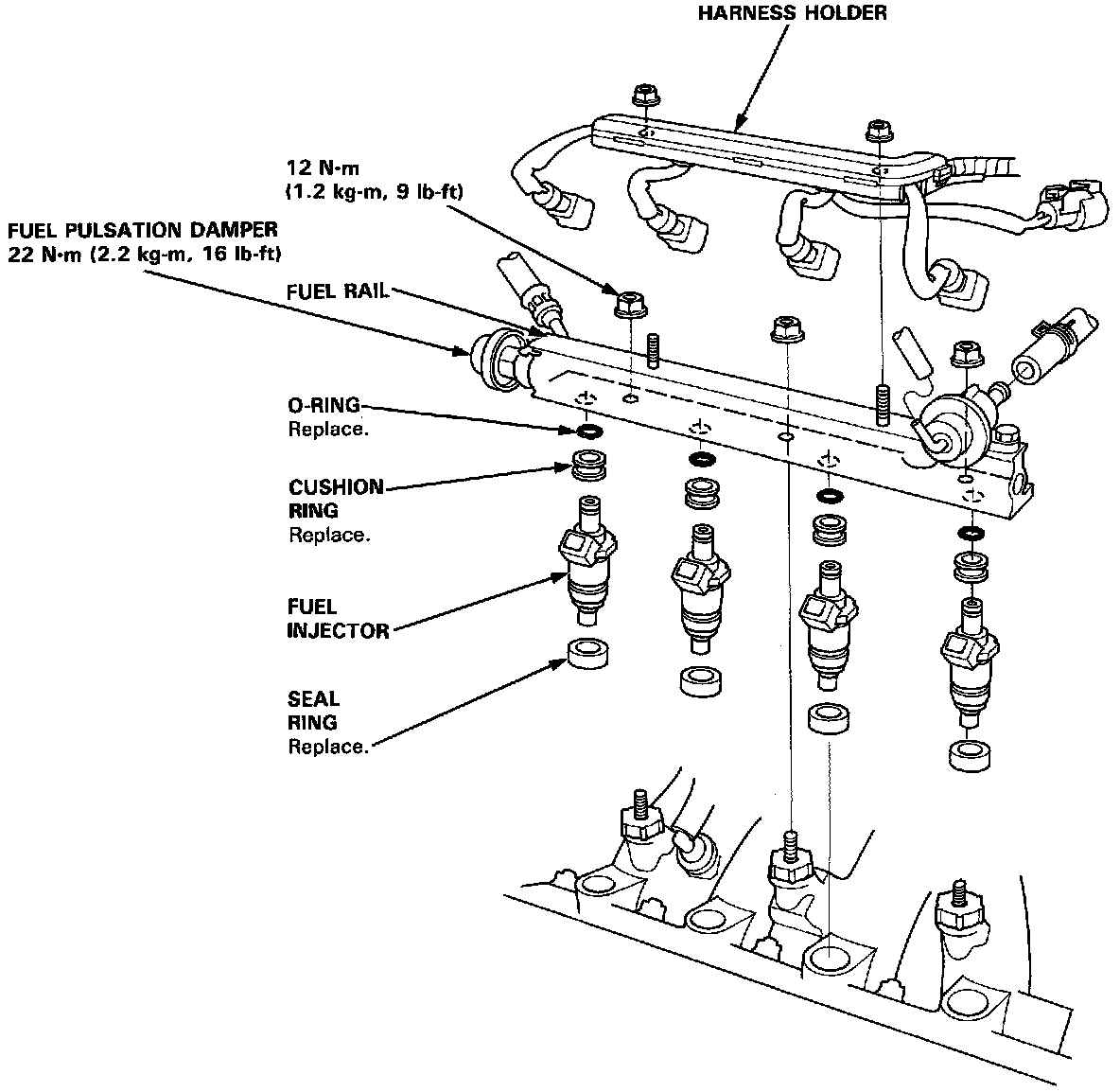 9. Coat new 0-rings with clean Engine oil, and put them on the Fuel Injectors.