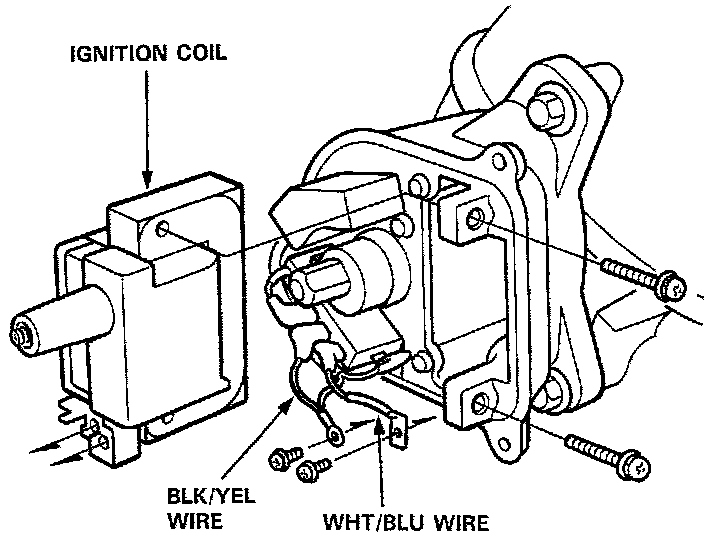 3. Remove the two screws, and slide the Ignition Coil out of the Distributor Ignition Housing.