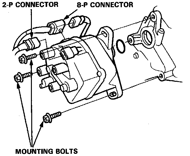 1. Disconnect the 2 P and 8 P Connectors from the Distributor.