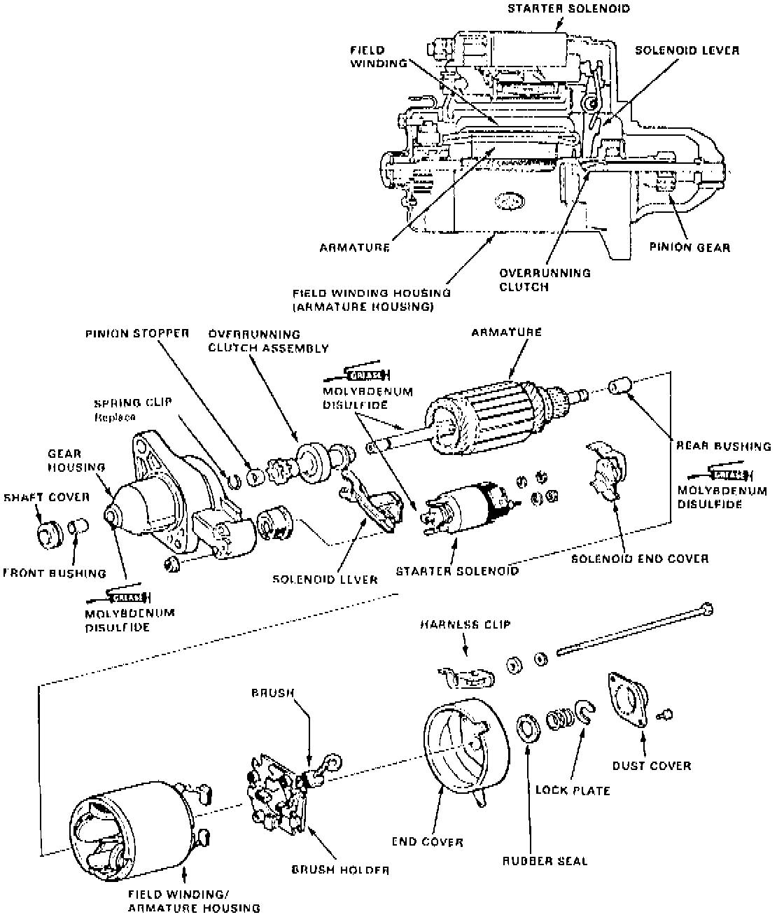 is equipped with an overrunning clutch type starter drive. A solenoid switch is mounted on the
