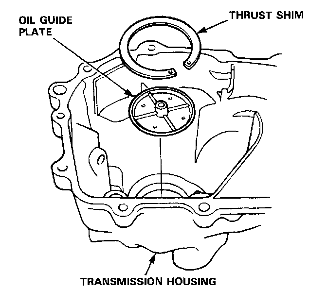 17. Install the oil guide plate and thrust shim on the transmission housing.