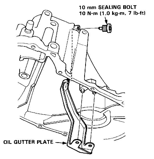 18. Install the oil gutter plate and 10 mm sealing bolt.