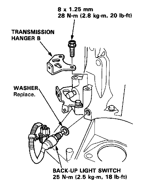 24. Install the back-up light switch and transmission hanger B.