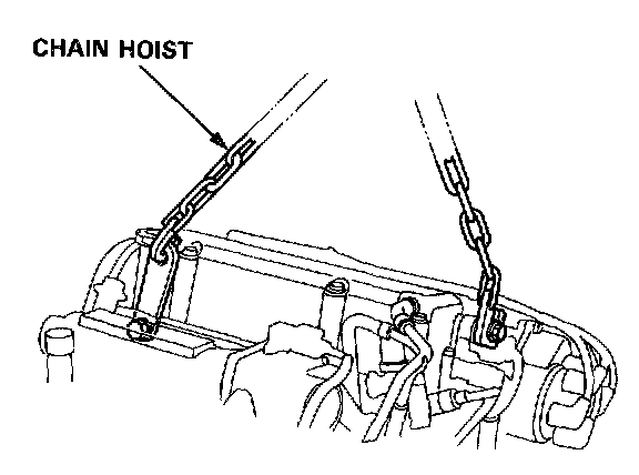 12. Install the bolts in the cylinder head and attach a chain hoist to the bolts, then lift the engine slightly to unload the mounts.