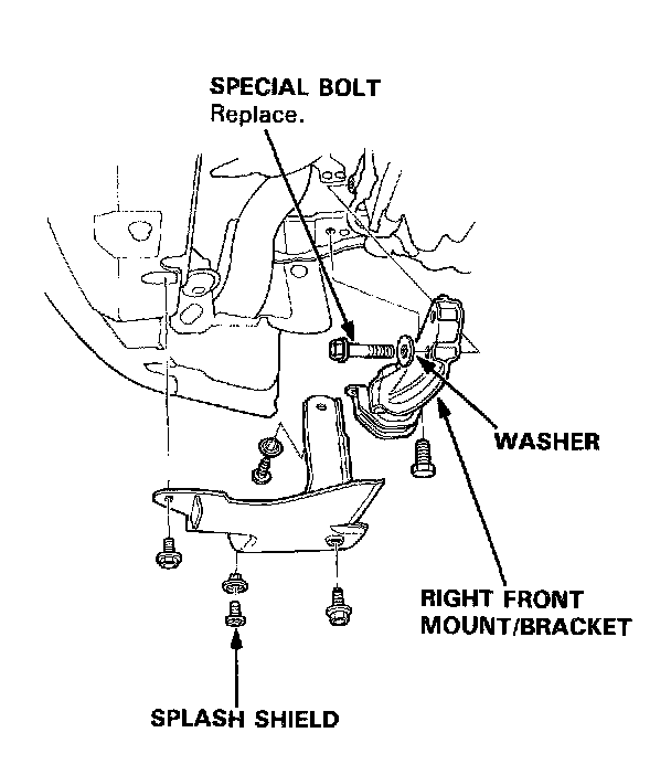 13. Remove the splash shield and right front mount/bracket.