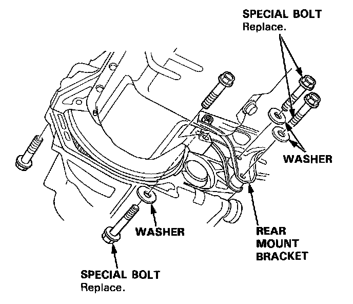 17. Remove the rear mount bracket bolts and transmission mounting bolts.