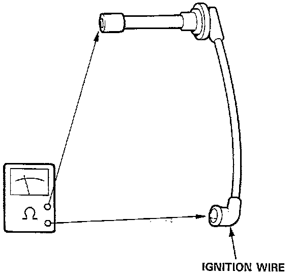 3. If resistance exceeds 25,000 ohms replace the Ignition Wire.