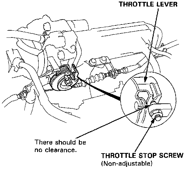 - Clearance between Throttle Stop Screw and Throttle Lever at full close position.